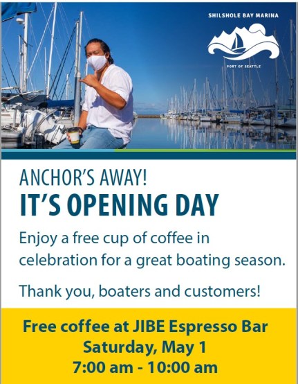 Shilshole Bay Marina is offering free coffee to it’s customers in celebration of Opening Day of Boating Season, Saturday, May 1st…